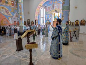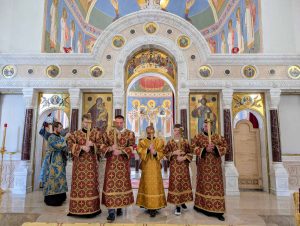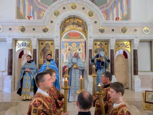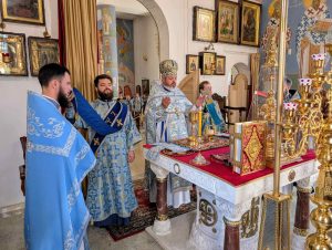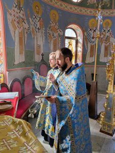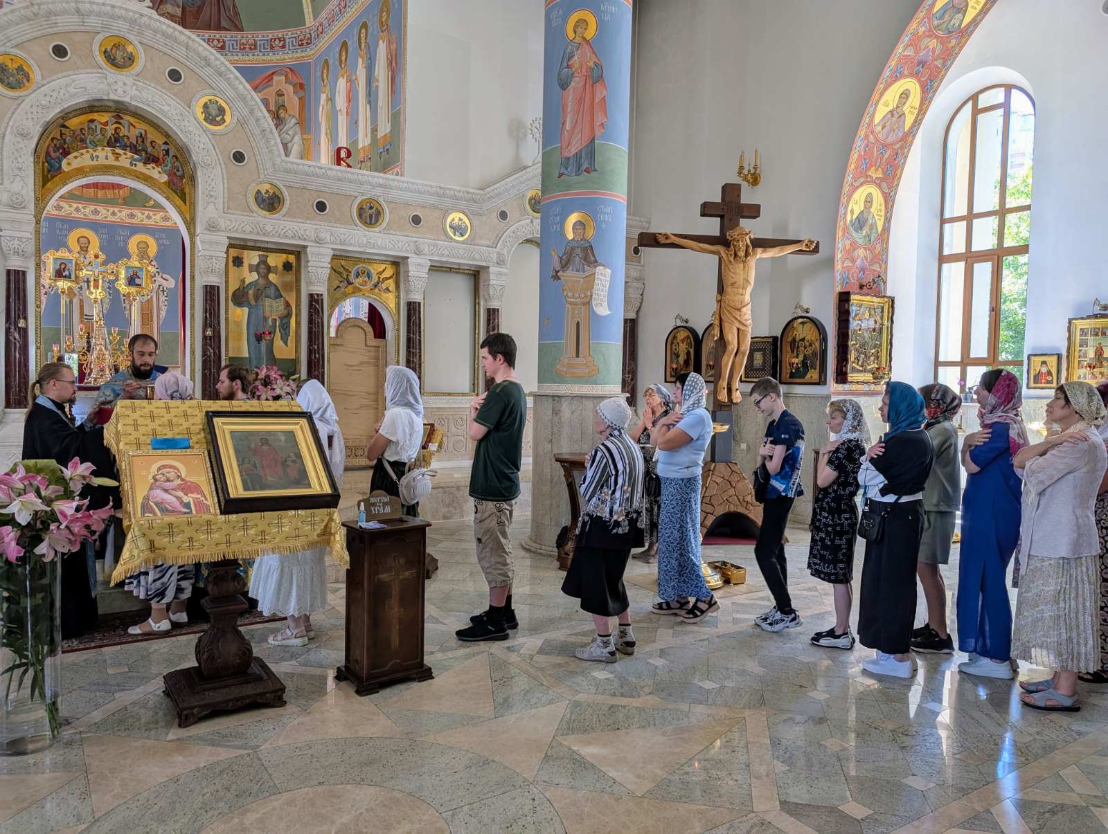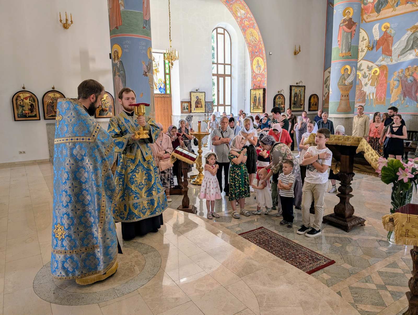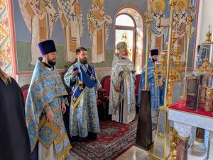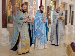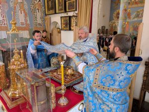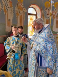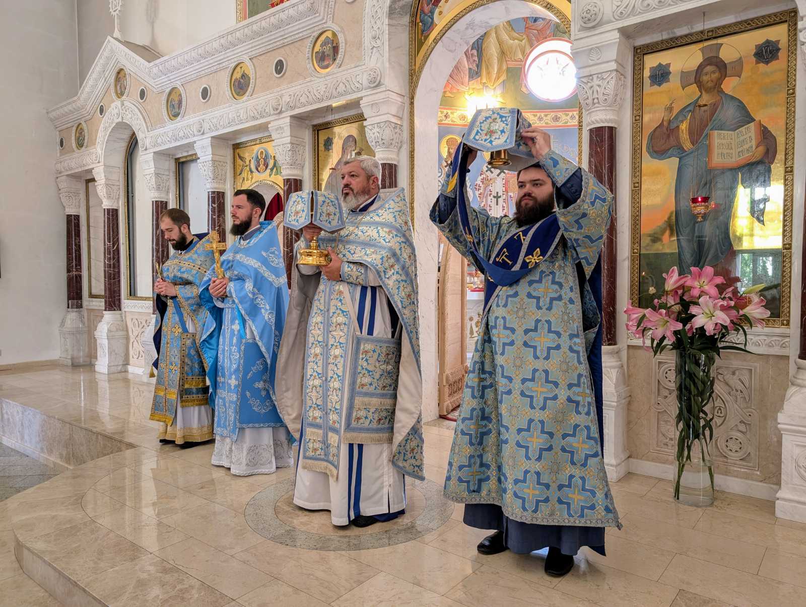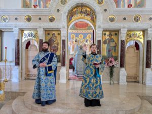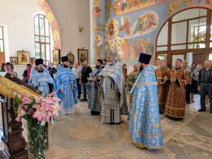 По окончании Богослужения было совершено славление пред праздничной иконой Божией Матери и прочтена молитва.
