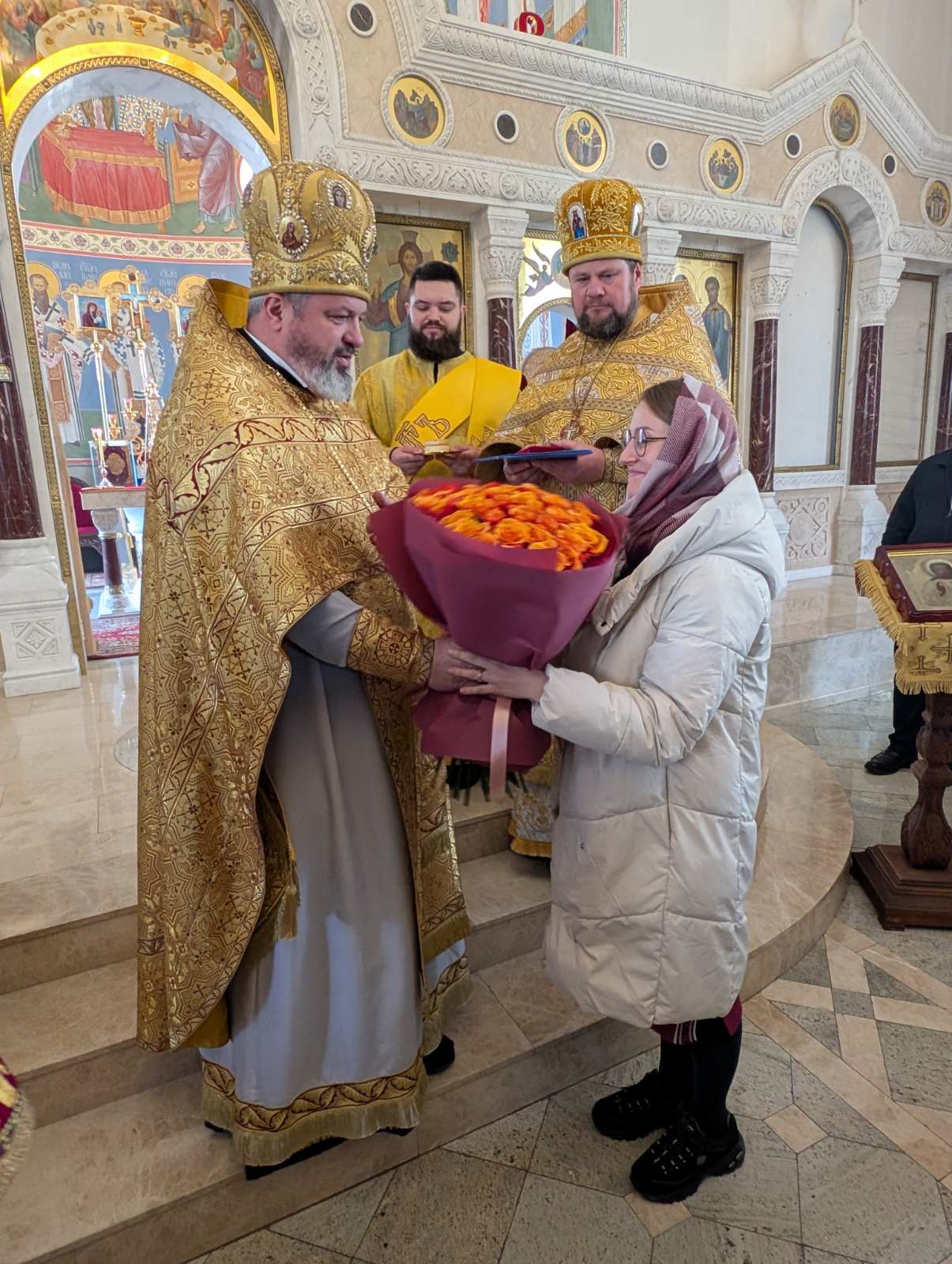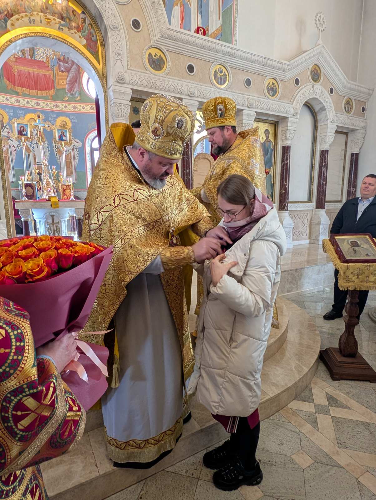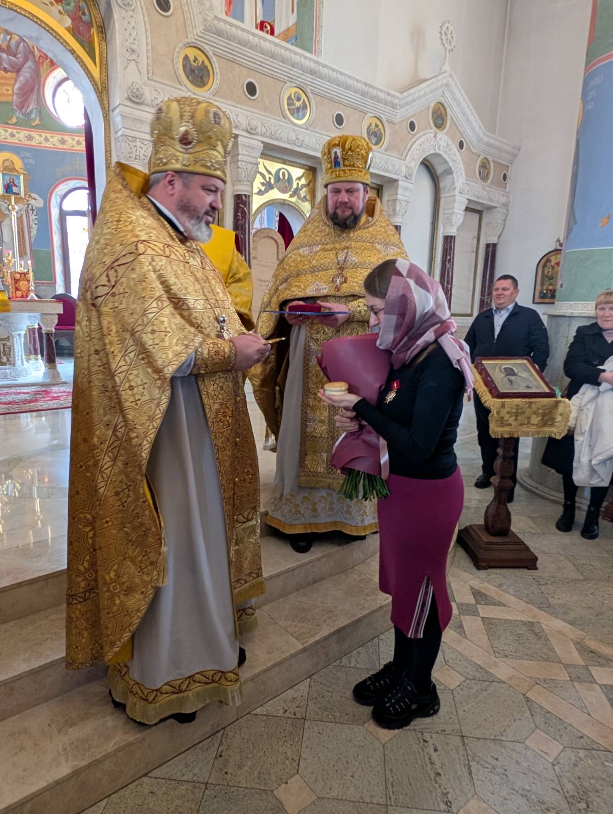 После воскресной Литургии, по благословению предстоятеля Украинской православной Церкви, Блаженнейшего митрополита Киевского и всея Украины Онуфрия, настоятель храма наградил регента хора – матушку Ксению орденом святой равноапостольной княгини Ольги по случаю ее 30-летнего юбилея.