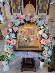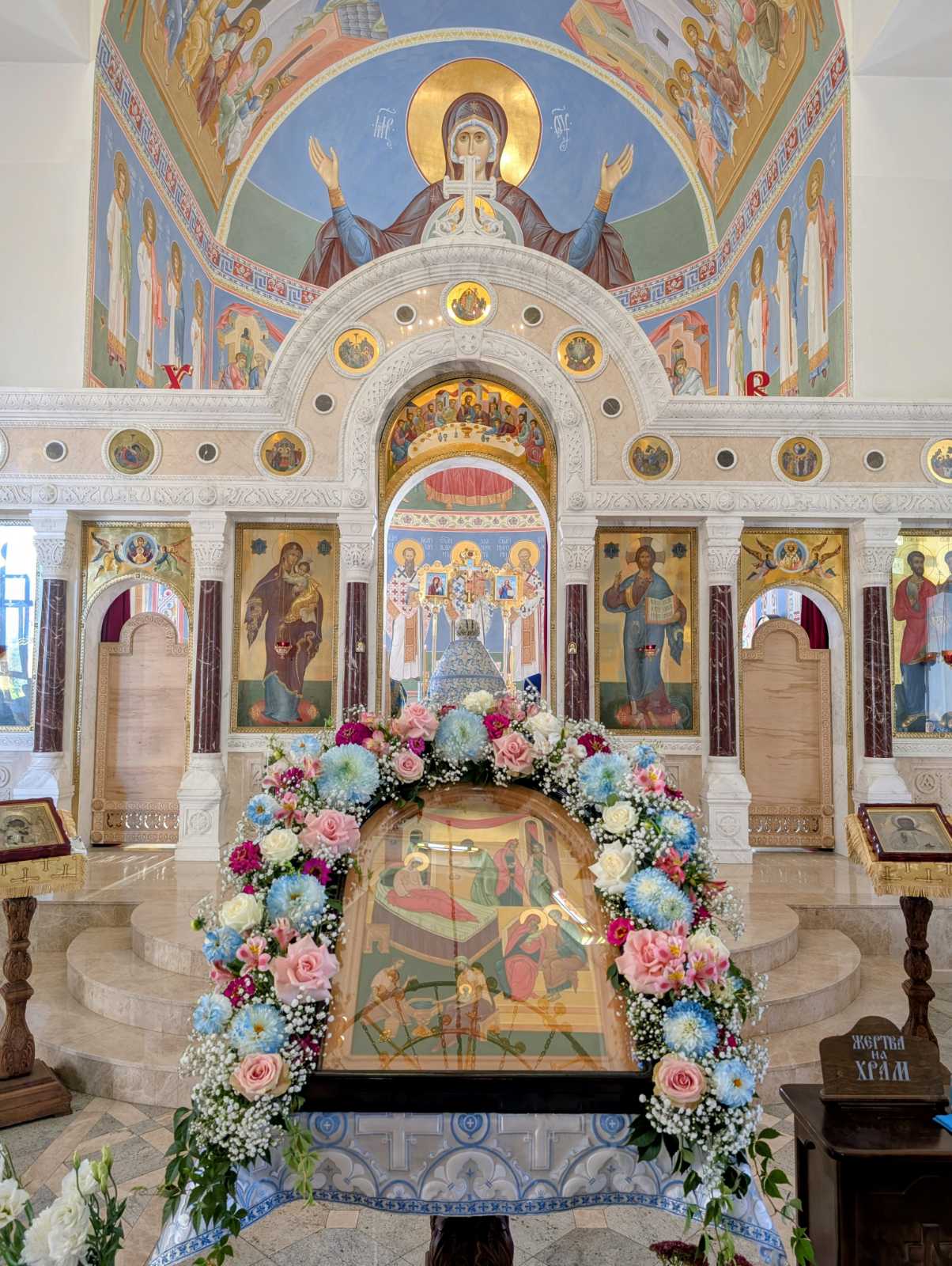 По заамвонной молитве был совершен чин славления пред праздничной иконой.