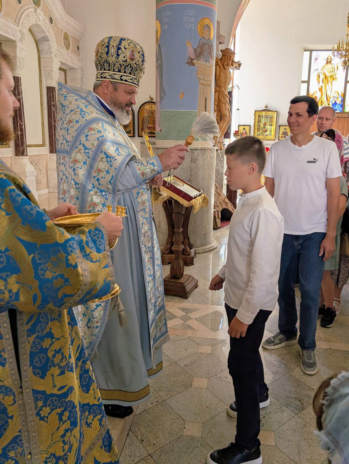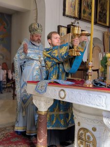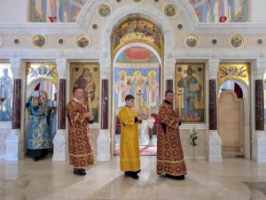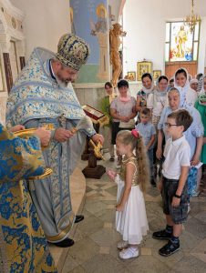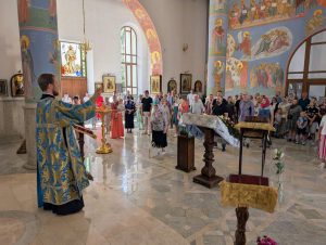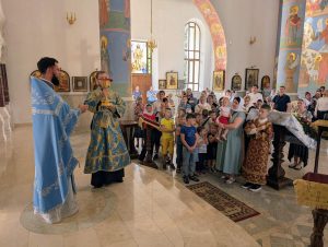 По окончании Литургии был совершен молебен перед началом нового учебного года. После молебна настоятель обратился к молящимся с назидательным словом проповеди.
