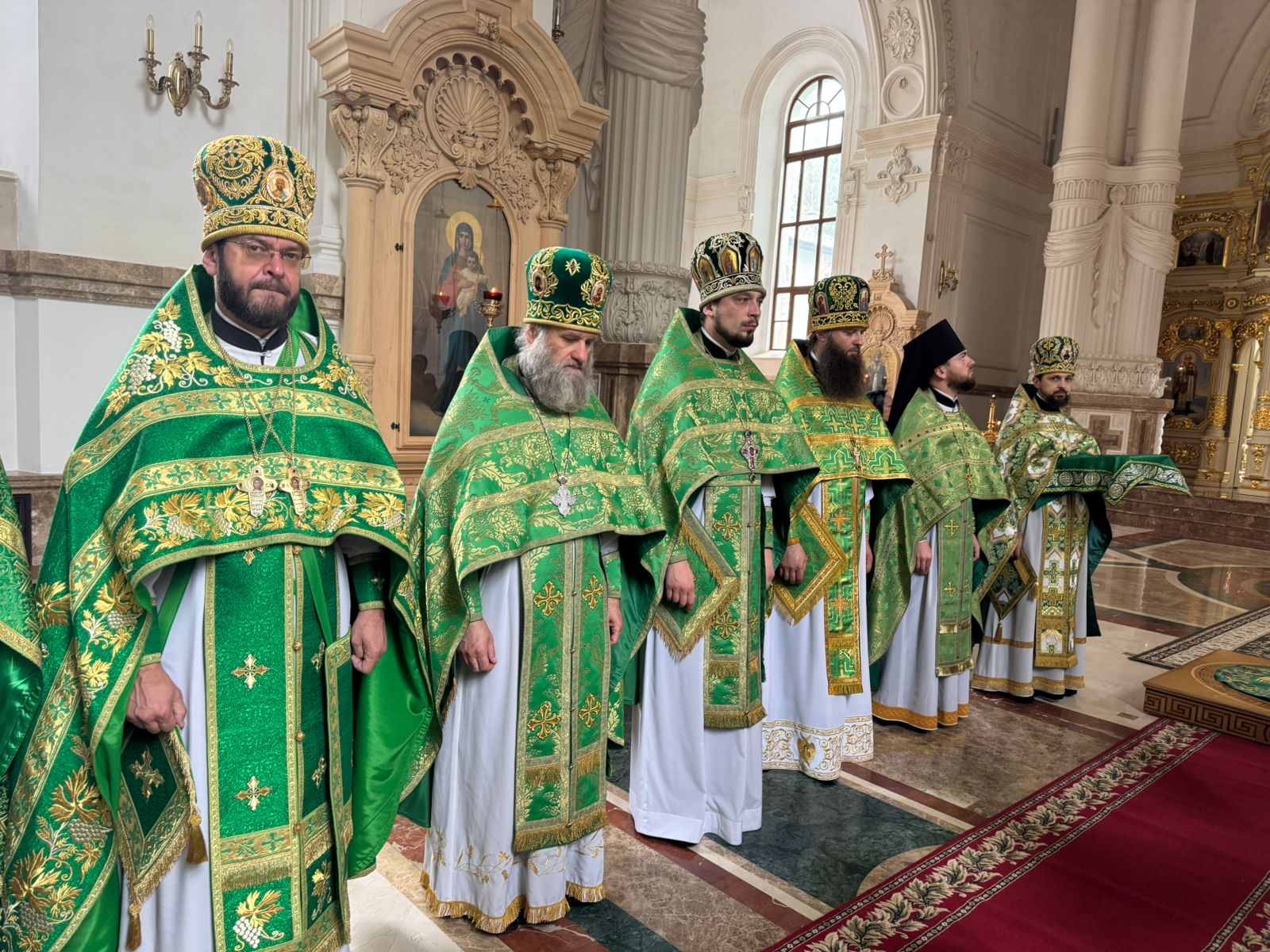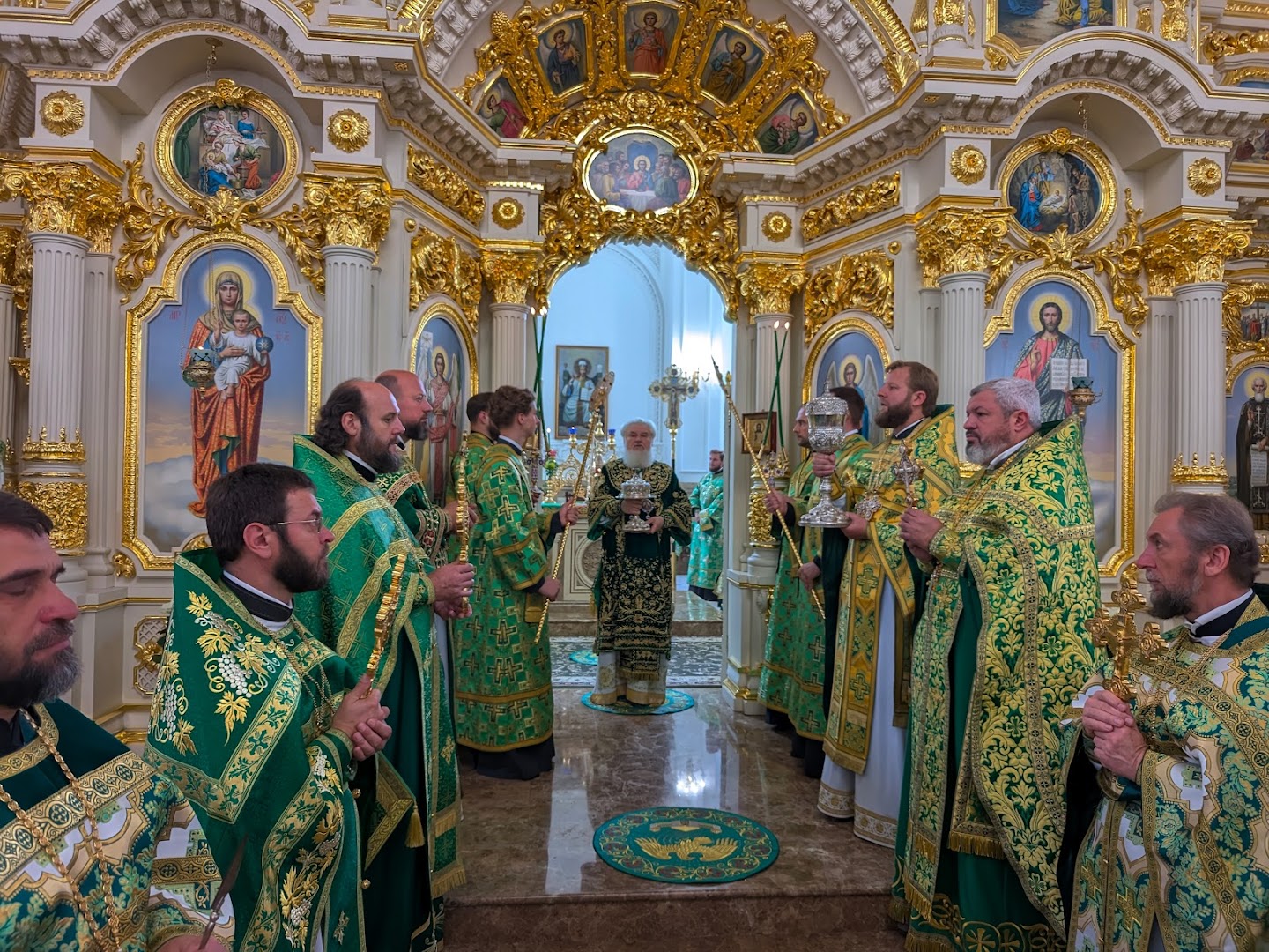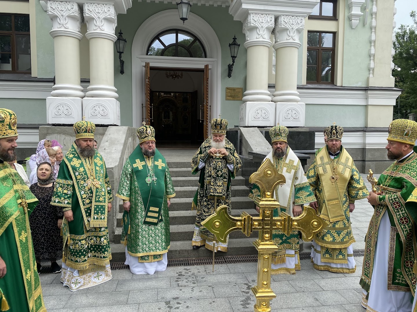 Праздничное Богослужение увенчалось торжественным крестным ходом, чином славления, а также освящением накупольного креста.